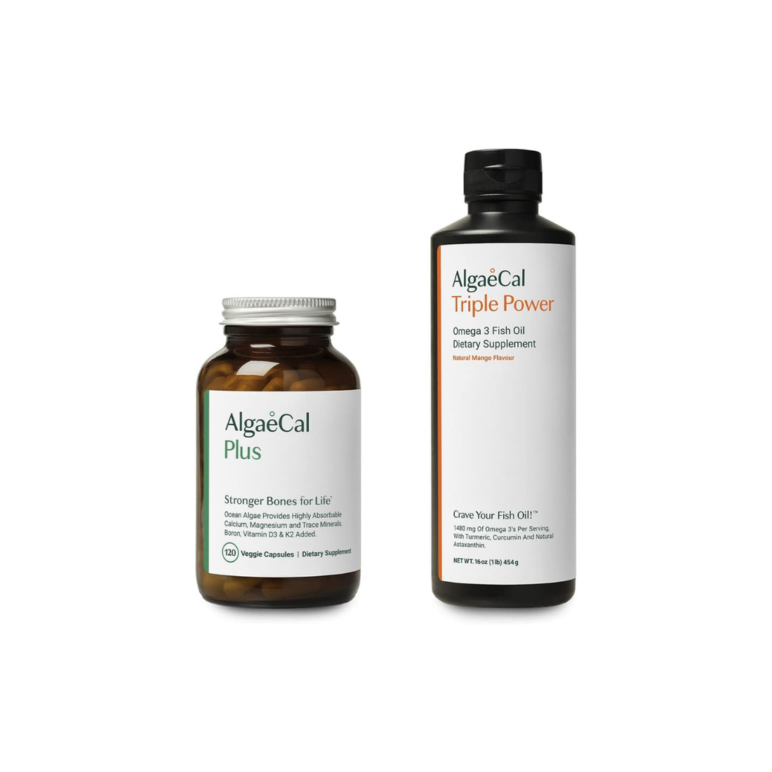 AlgaeCal Bundle - All Natural Calcium Supplement VIT D3 & K2, Magnesium, Boron and Trace Minerals & Triple Power Omega-3 Fish Oil Natural Liquid Emulsion with EPA DHA Curcumin, Astaxanthin