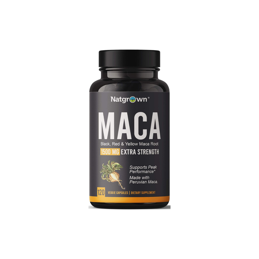 Natgrown Organic Maca Root Powder Capsules 1500 Mg with Black + Red + Yellow Peruvian Maca Root Extract Supplement for Men and Women - Vegan Pills